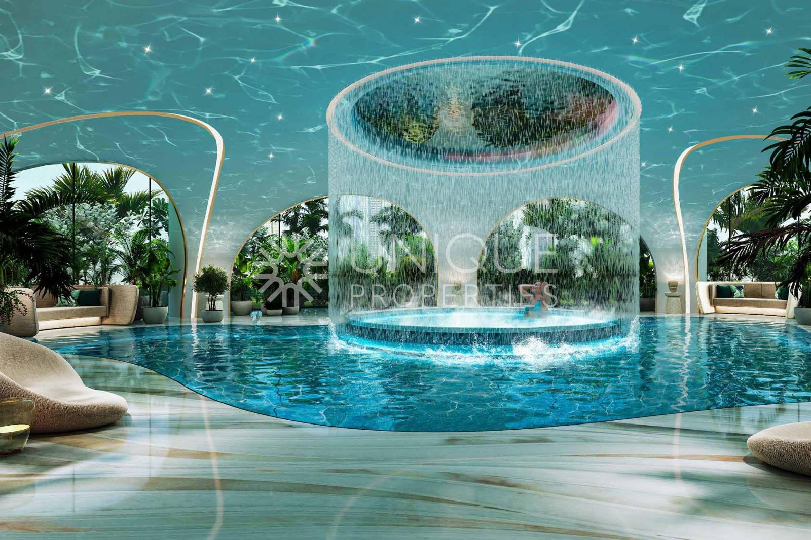 • Interiors: Biophilic design with natural textures, soft tones, and indoor greenery; select units feature private circular pools on wrap-around balconies.