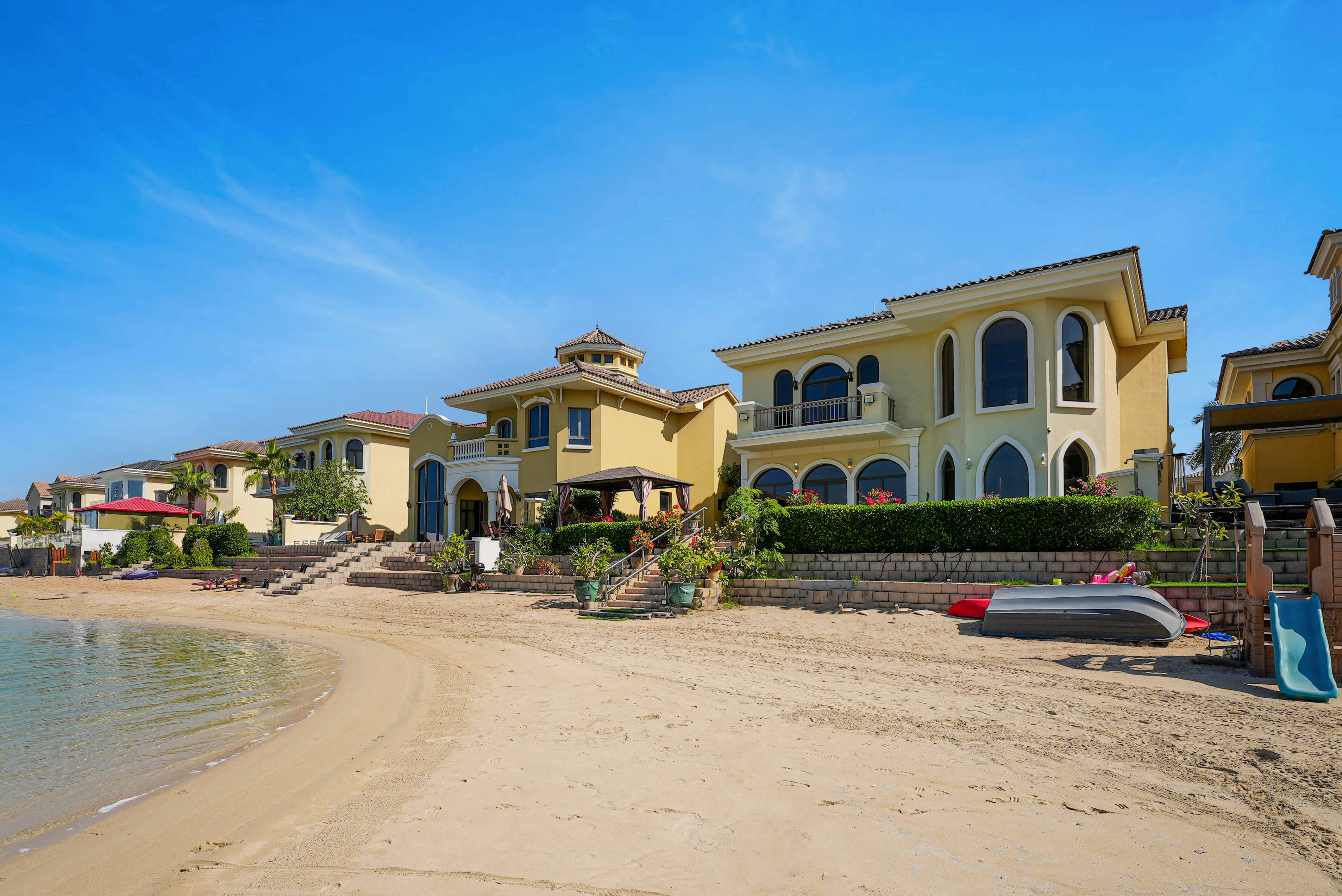 Owning an apartment on "The Palm" is a prestigious affair in Dubai. The island’s apartments, primarily along the trunk, offer a diverse range of styles and sizes. From cozy studios to sprawling 5 or 6-bedroom apartments, there are options for everyone's taste. And are you searching for views? They're simply breathtaking.